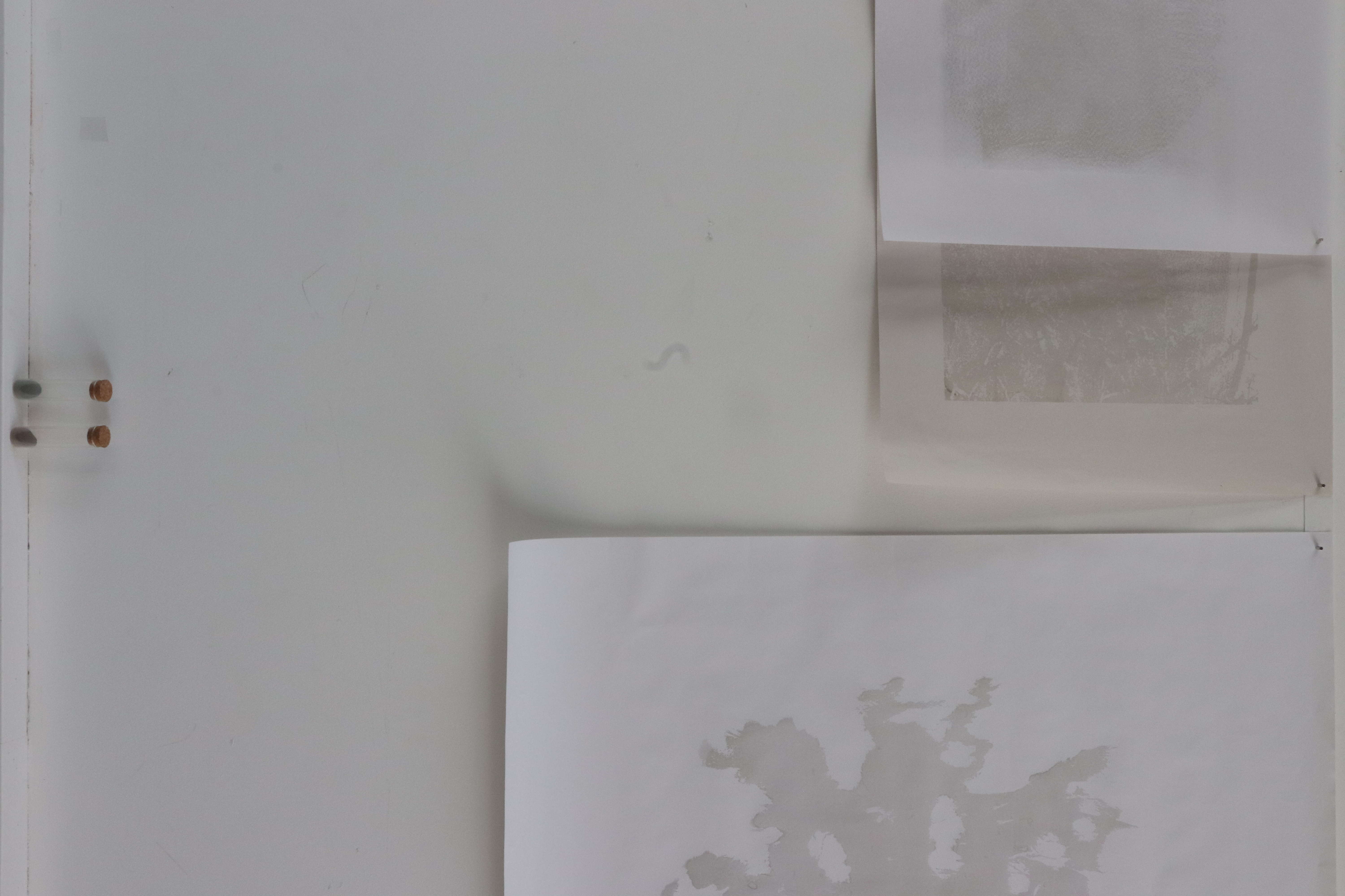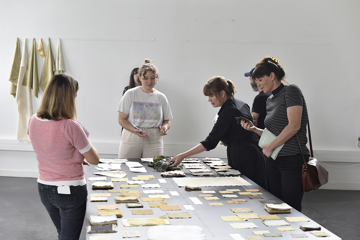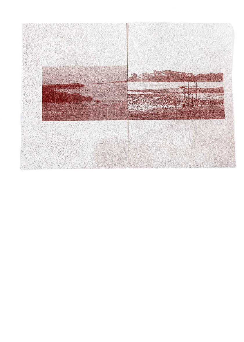 Les paysages auxquels je suis attachée sont amenés à disparaître, j’expérimente donc de nouvelles façons de créer et de fabriquer pour les faire exister autrement. La teinture végétale et tout ce qui en découle constituent la base de mon processus créatif. En extrayant l’essence du paysage à travers la couleur, j’essaie de mettre en relation la fragilité des paysages qui m’entourent avec celle des supports que je crée. Les morceaux de tissus, les papiers et les pigments sont des traces, des empreintes, des souvenirs de ces balades.