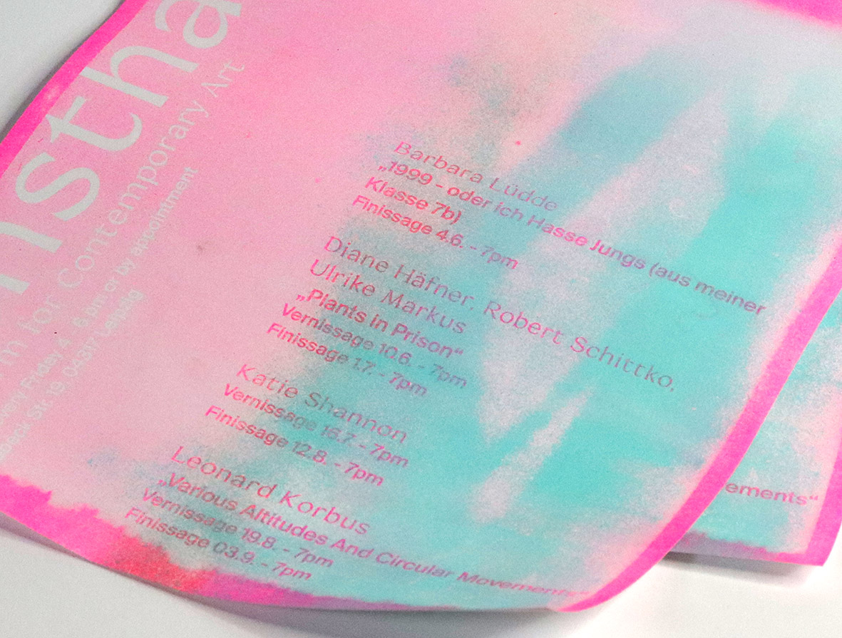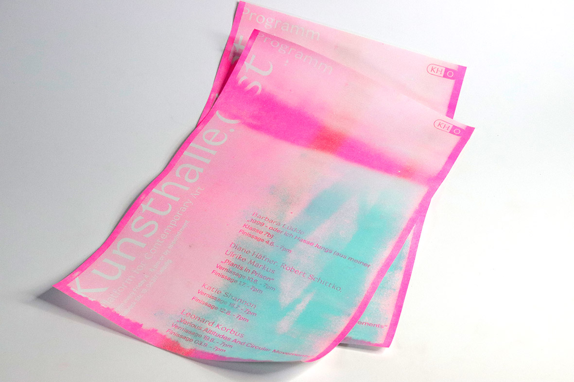 Layout of the programme for the Kunsthalle.Ost contemporary art gallery in Leipzig. Risography printing.